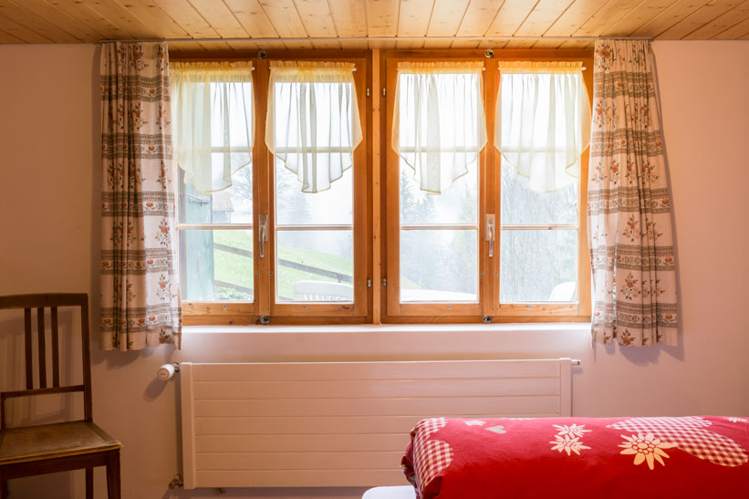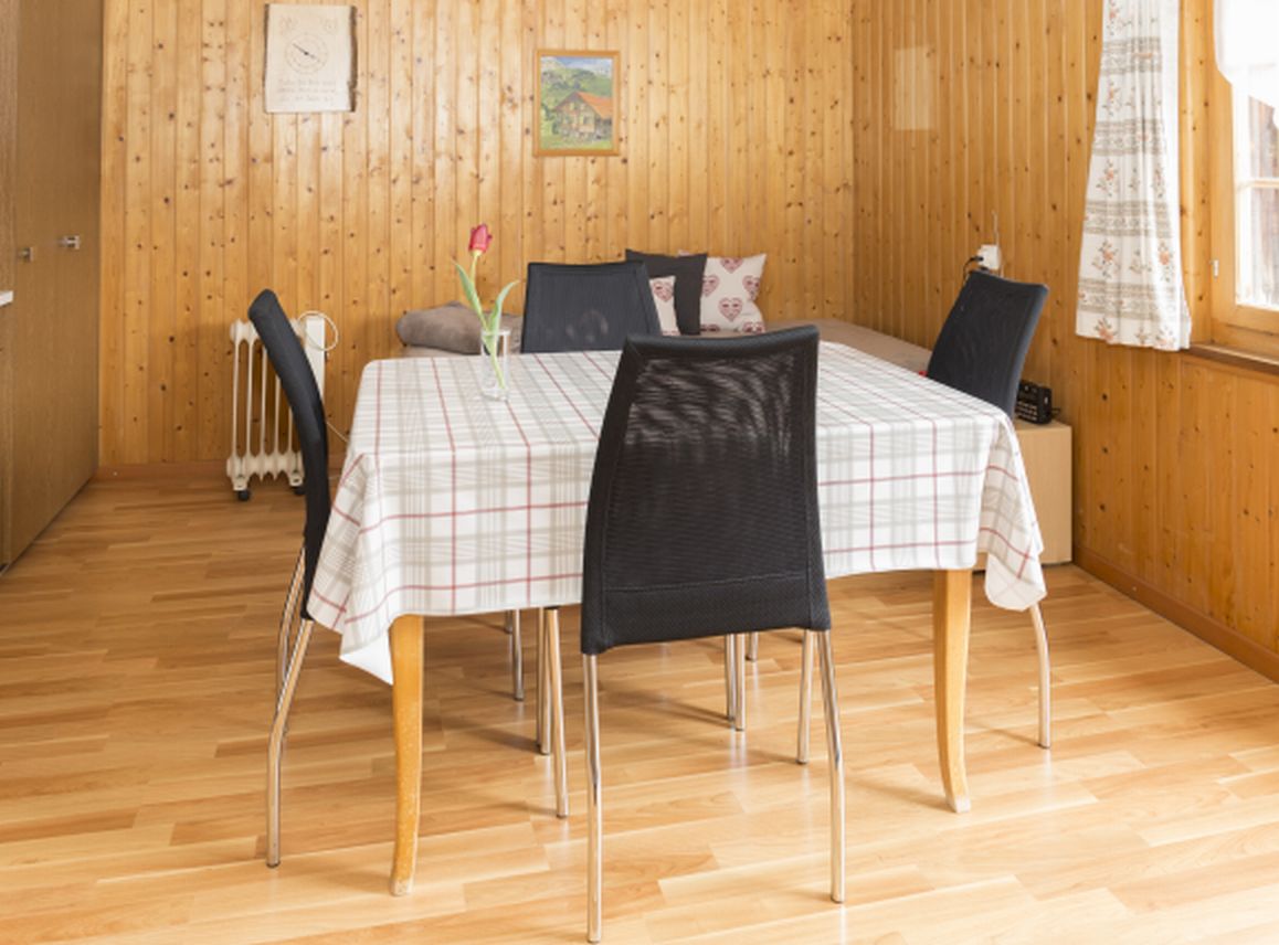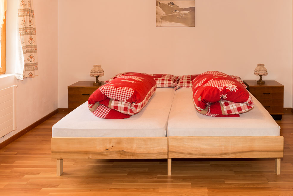 Unsere Ferienwohnung befindet sich im Untergeschoss des Bergbauernhofs und ist gegen Süden ausgerichtet. Sie bietet Platz für 3 bis 4 erwachsene Personen.