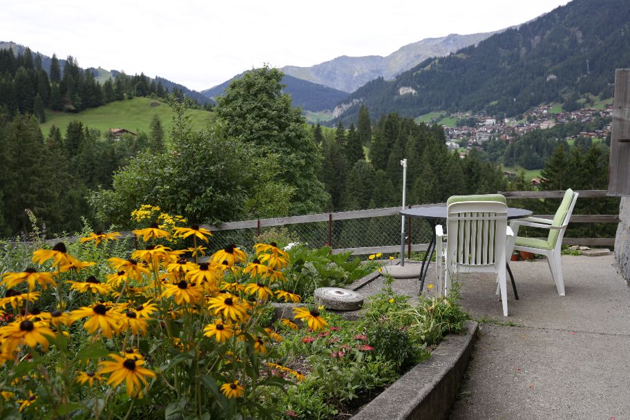 Sitzplatz mit Aussicht auf das Dorf (Schwand)